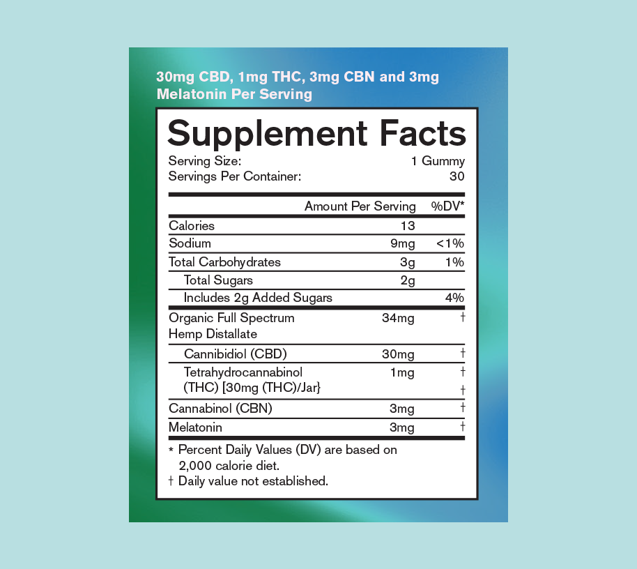 Cane Sugar, Tapioca Syrup, Purified Water, Pectin, Full-Spectrum Hemp-Derived Extracts, Citric Acid, Natural Flavors, Sodium Citrate, MCT Oil, Natural Colors